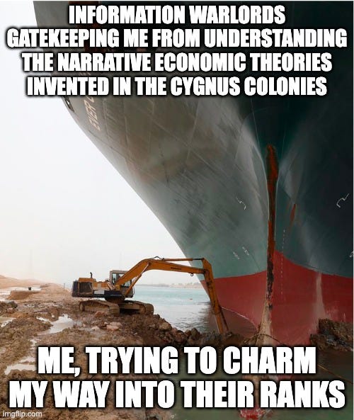 Most contemporary fiction I see today tends to pit ideological or perspective differences against each other, where the actual dynamics of the world are too murky for us to make pragmatic distinctions about their appropriateness. This could be viewed as “idealized circumstances” but I just view it as lame. Real situations are full of details about the dynamics that become load-bearing as soon as they can be used for coordination—what Thomas Schelling calls “incidental details” in The Strategy of Conflict, a foundation text for the birth of a new genre that takes the underlying dynamics of imagined worlds seriously.